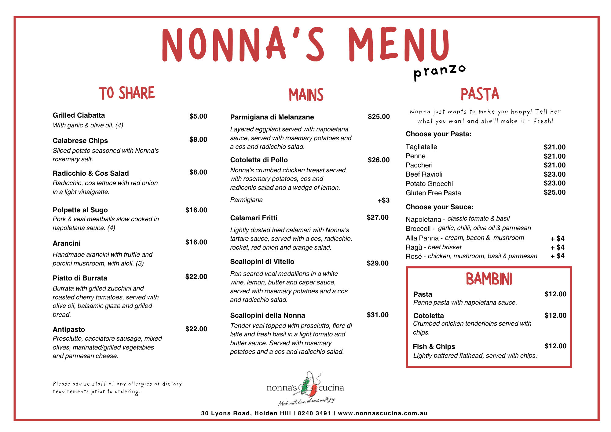 We can't wait to welcome you to Nonna's Cafe!